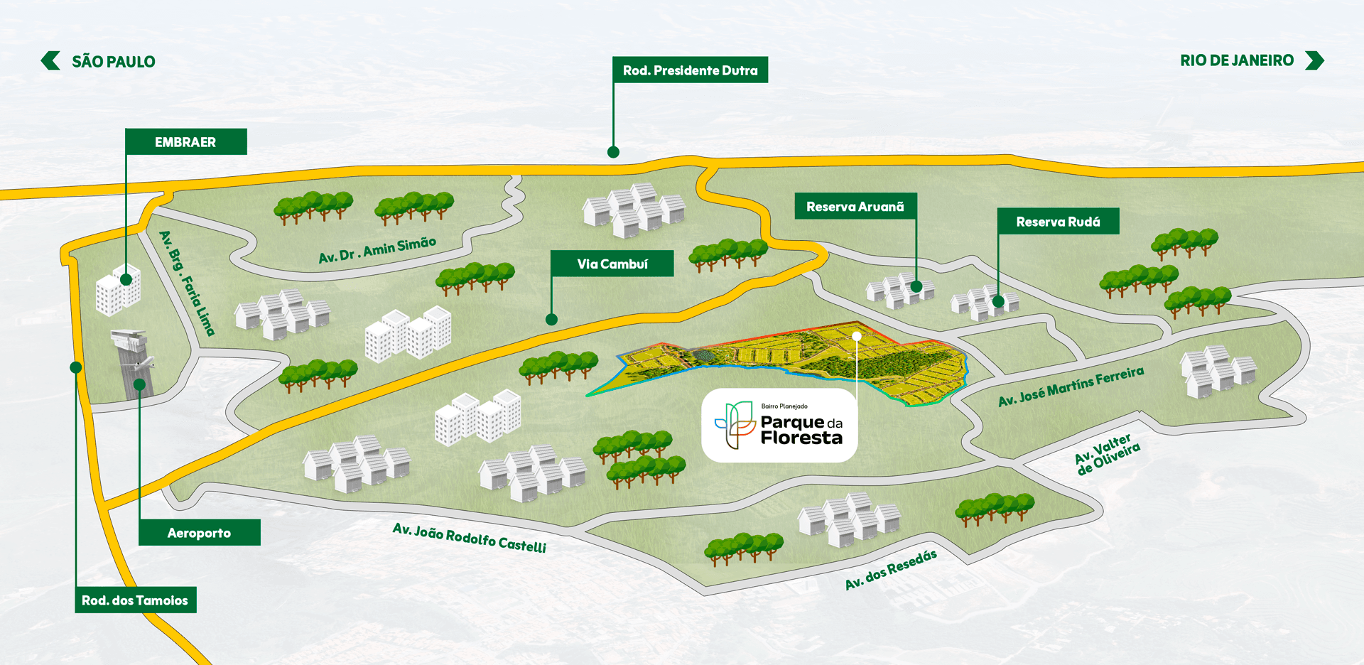 O Parque da Floresta é um bairro completo e planejado, com diferentes formatos de moradia e uso, mas um mesmo conceito: qualidade, integração e bem-estar.